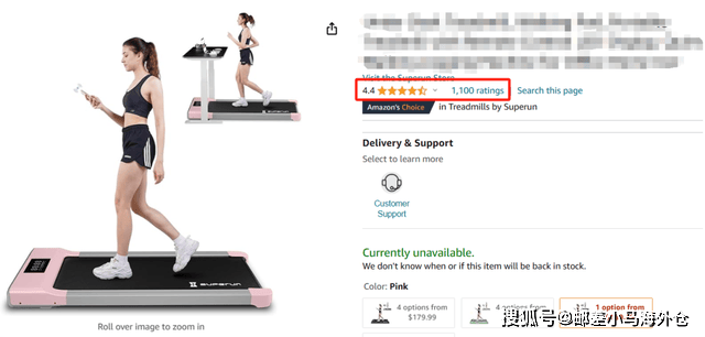 来自杭州的出名品牌从营跑步机,将软件取硬件连系起来,通过智能化使用来调动消费者的活动热情,冲上了亚马逊跑步机BS榜的前十。发卖额跨越了160万美金,斩获4。4的高评分和1100条评论。