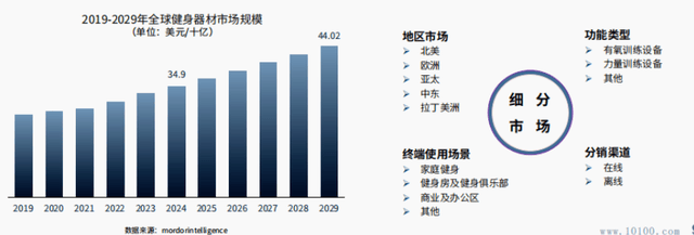 2024年全球健身器材市场规模估计为349。2亿美元,估计到2029年将达到440。2亿美元,年复合增加率为4。7%。此外,估计到2029年电商市场规模将达140。7亿美元,期间将显著增加。糊口体例变化和不健康饮食习惯导致的慢性疾病风行,添加了对健康和健身的关心,特别是年轻一代,鞭策了健身器材市场和健身核心的增加。