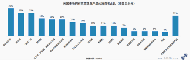 数据显示,哑铃或杠铃是最常见的家用健身器材,占比30%;其次是跑步机和瑜伽垫,同样有25%的普及率,瑜伽垫的高具有率反映了瑜伽和地面熬炼的普及。