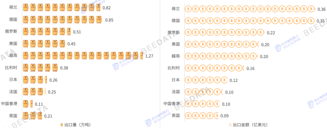 2。 从商业伙伴来看,2024年,中国咖啡进口商业伙伴中,按进口金额排名前三的国度/地域顺次是巴西、哥伦比亚、越南,巴西是中国最大的咖啡进口来历国,中国咖啡进口30%以长进口自巴西;中国咖啡出口商业伙伴中,按出口金额排名前三的国度/地域顺次是荷兰、以及俄罗斯,出口销往这三个地域的咖啡出口量正在全国咖啡出口量中所占的比沉别离为13。16%、13。61%、8。18%,出口金额正在全国咖啡出口金额中所占的比沉别离为14。79%、14。69%、9。06%。