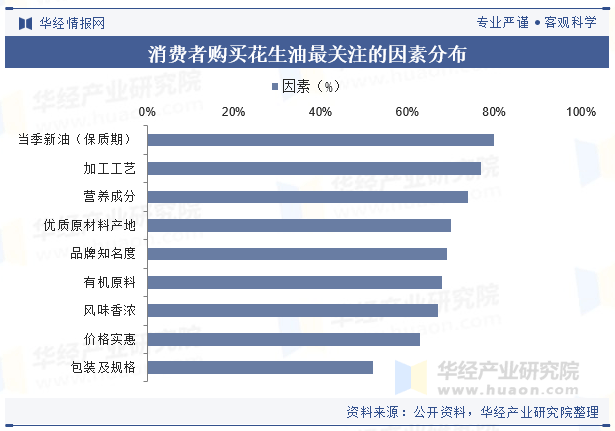 新颖度是消费者采办花生油的一个主要关心点,80%的用户最关心产物能否为当季新油,新花生、新颖油成为潜力卖点;同时?。