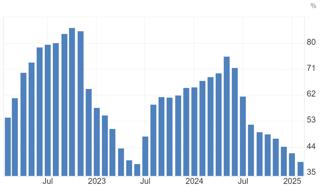 [3] 土耳其央行正在2024年12月和2025年1月持续两次降息250个基点,降息周期,但政策利率仍处于45%的阶段性高位,按照最新市场参取者对将来12个月的通缩预期,现实利率高达18%。正在较大的利差的支撑下,经CPI调整后,2024全年里拉兑土耳其次要商业伙伴的货泉篮子升值了近21%,有帮于后续的通货收缩历程。从通缩走势来看,土耳其通缩2022年以来大大都月份连结正在38%以上,2024年5月达到75。5%的积年来高位,2024年12月为44。4%,2025年1月为42。1%。